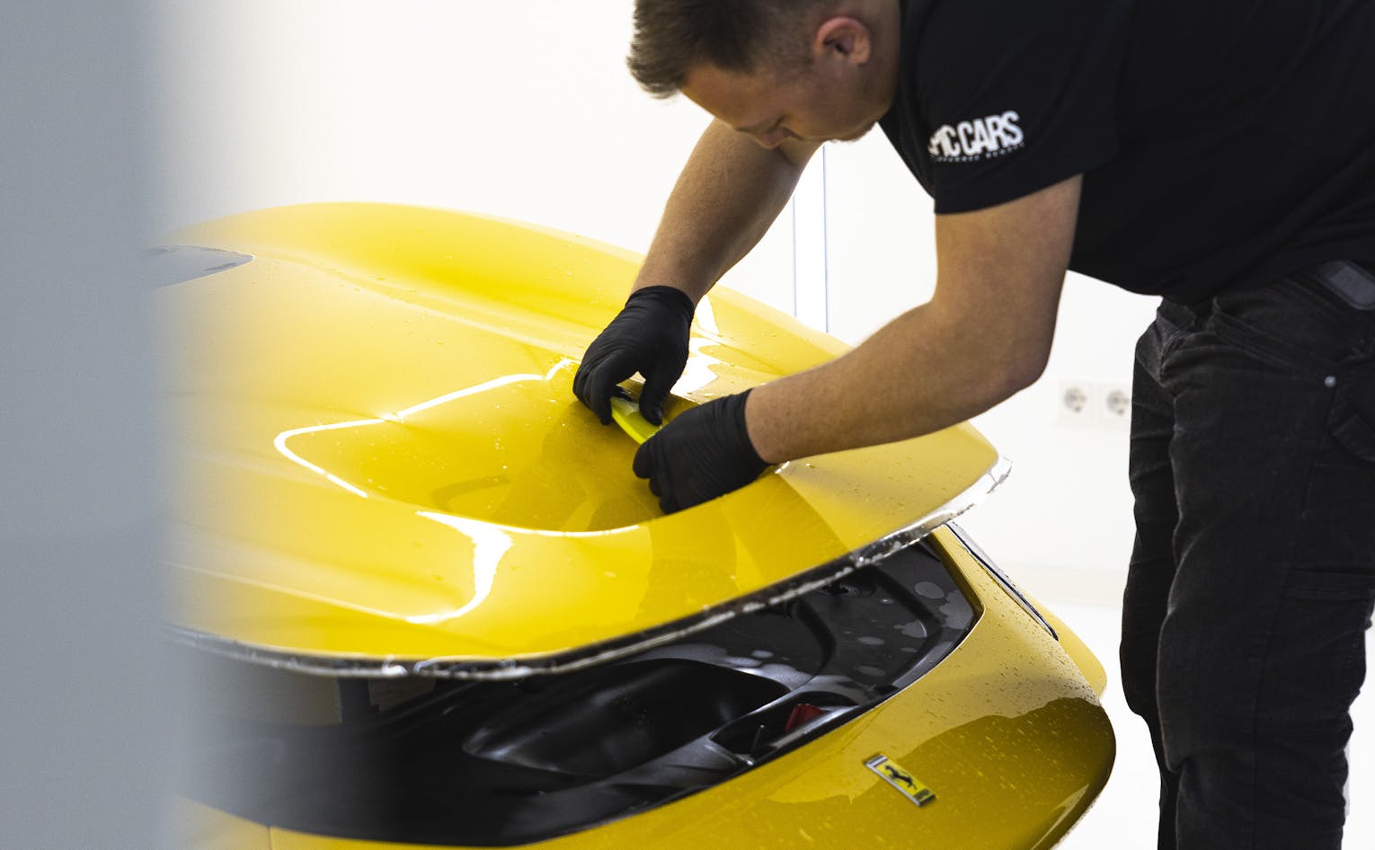 Der Ferrari F8 wurde werksneu für den kompletten Schutz mit Lackschutzfolie bei uns angeliefert.