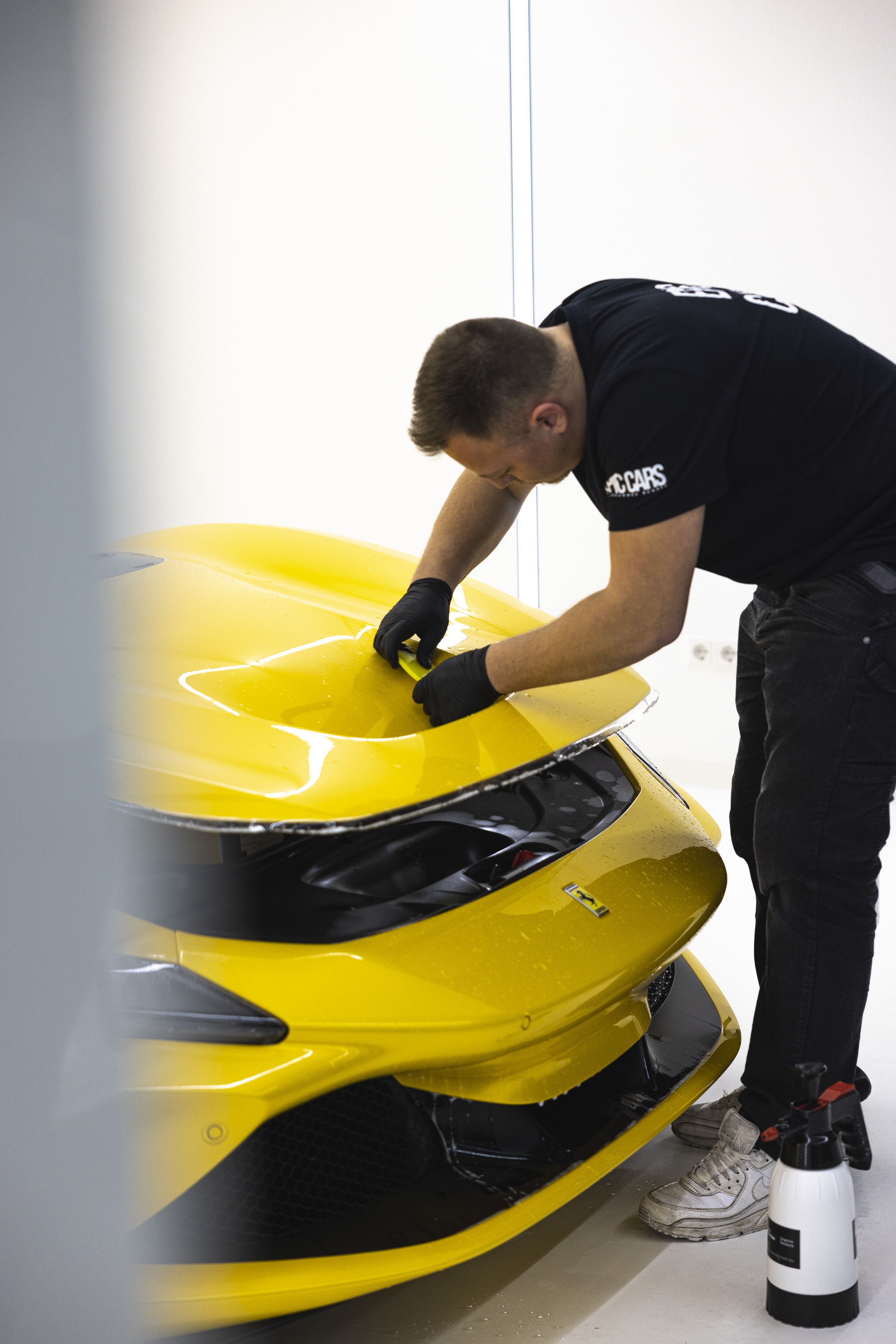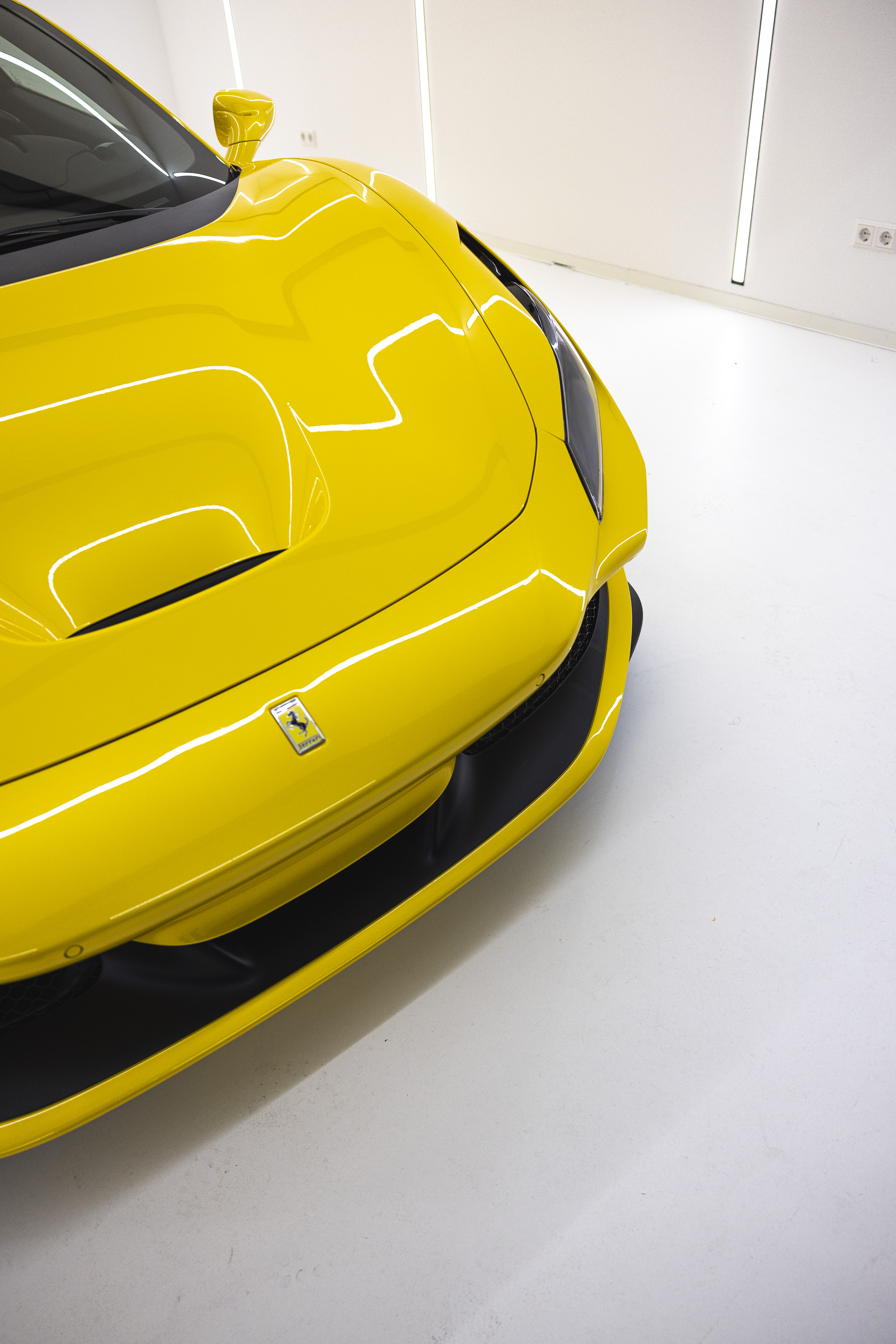 Der Ferrari F8 wurde werksneu für den kompletten Schutz mit Lackschutzfolie bei uns angeliefert.
